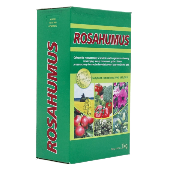 Rosahumus – nawóz organiczno-mineralny z kwasami humusowymi to całkowicie rozpuszczalny w wodzie nawóz zawierający kwasy humusowe, potas oraz żelazo, przeznaczony do nawożenia doglebowego. Poprawia jakość gleby, stymuluje rozwój systemu korzeniowego, wpływa pozytywnie na ilość wody w glebie oraz rozwój pożytecznych mikroorganizmów. Dzięki niemu zwiększa się dostępność składników pokarmowych w korzeniach, zapobiega erozji i powierzchniowym spływom wody. Zawiera 85% kwasów humusowych, 12% tlenku potasu (K2O) i 0,6% żelaza (Fe), co czyni go wyjątkowo efektywnym nawozem. Nawóz dopuszczony do obrotu decyzją Ministra Rolnictwa i Rozwoju Wsi nr 150a/09.