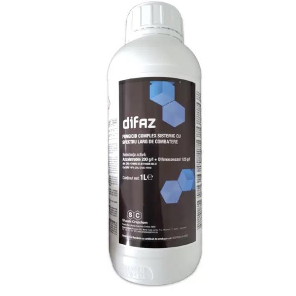 Difaz 1L (azoksystrobina, difenokonazol) to skuteczny preparat grzybobójczy, idealny do ochrony roślin przed chorobami grzybowymi. Doskonały wybór dla profesjonalnych rolników oraz pasjonatów ogrodnictwa, dostępny w naszym sklepie rolniczym i ogrodniczym. Oferujemy go w atrakcyjnej cenie w hurtowni dla rolnika oraz hurtowni ogrodniczej.